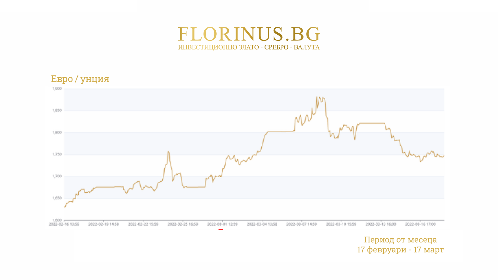 На Florinus.bg можете да следите курса на благородните метали на живо. Графиките на цените на златото на Florinus ви позволяват да следите цените на златото в реално време. Можете също така да проверите историческите цени на златото за период от 20 години назад. Графики на благородните метали можете да намерите тук.