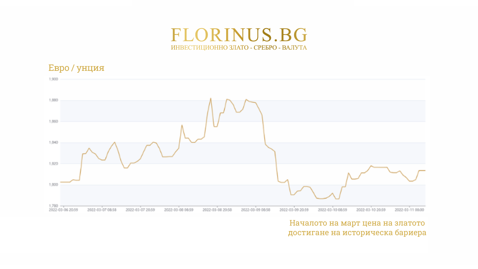 В продължение на два поредни дни от 7 март, цената на златото рязко се повиши и премина бариерата от 2000 щатски долара. Последният път, когато златото достигна този праг, беше през 2020 г., когато светът се сблъска с първата вълна на COVID-19. С нарастването на напрежението във връзка с конфликта между Русия и Украйна, както и с разглеждането на вноса на руски петрол от страна на САЩ и Европа, пазарът на благородни метали е все по-засегнат, което е и причината за текущите цени на златото. Това е едва вторият случай в историята, когато златото преминава границата от 2000 щатски долара, но експертите прогнозират, че няма да е последният.