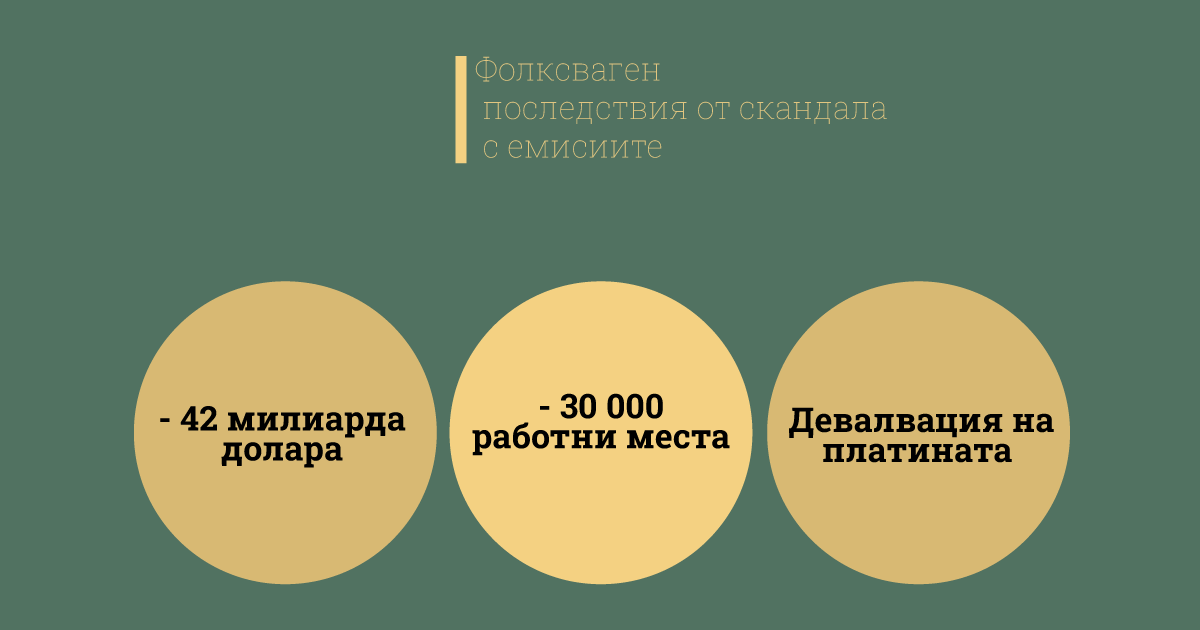 За въздействието на скандала говори и фактът, че стойността на платината е спаднала под тази на златото. Това подчертава зависимостта на пазара на благородни метали от производството на дизелови автомобили.