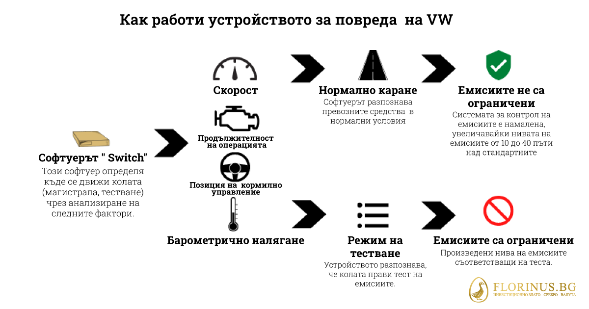Проблемът обаче е, че автомобилите на Volkswagen превишават граничните стойности на емисиите около 40 пъти в нормален режим на шофиране. Принципът на работа на устройството е да предоставя неточни данни по време на теста. Емисиите на изгорели газове са тясно свързани с рака на белия дроб. Замърсителите от автомобилите също предизвикват астма, бронхит и емфизем.