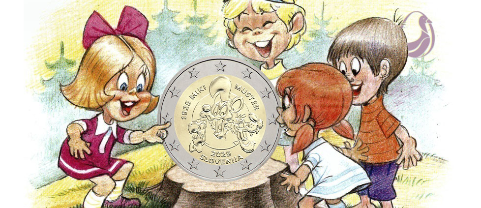 About the coin: This commemorative 2-euro coin, issued in 2025, marks the 100th anniversary of Slovenian comic artist, illustrator and animator Miki Muster. It will enter circulation and numismatic sale on 26 November 2025. The coin is minted in BU and proof qualities, with a purchase limit applied to the proof version.