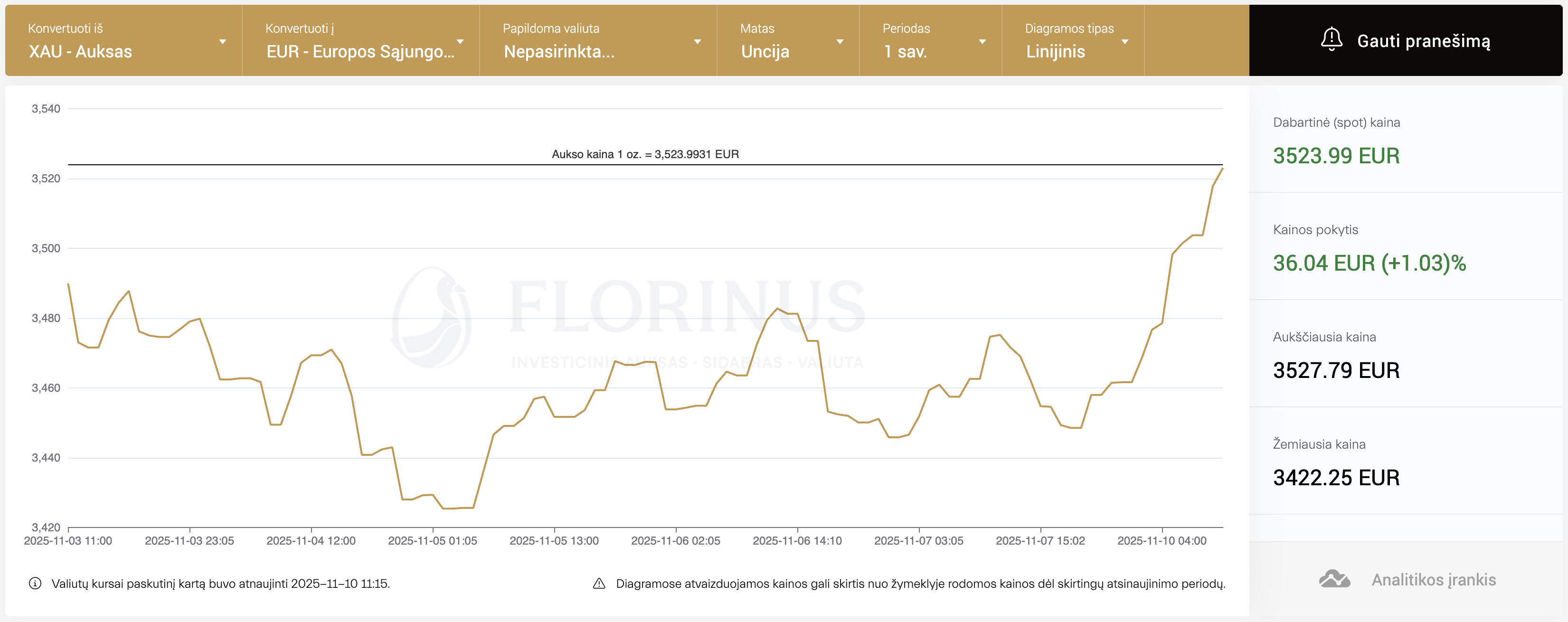 Ypač ryškiai matoma Lenkijos pozicija. Spalio mėnesį Lenkijos centrinis bankas papildė rezervus dar 16 tonų aukso – tai pirmas reikšmingesnis pirkimas nuo gegužės. Šiuo metu šalies aukso atsargos siekia 530 tonų, o tai sudaro apie 26% jos oficialių rezervų. Lenkija jau ne vienerius metus vykdo aiškią ir ilgalaikę politiką didinti fizinio aukso dalį nacionaliniuose rezervuose, siekdama, kad ši dalis pasiektų bent 30%. Tokia strategija aiškiai rodo norą stiprinti šalies finansinį atsparumą ir mažinti priklausomybę nuo valiutinių rezervų svyravimų.