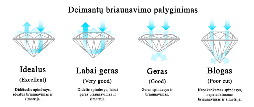 Geras briaunavimas (Good cut). Geras spindesys ir briaunavimas, atspindi mažiau šviesos negu į juos patenka.