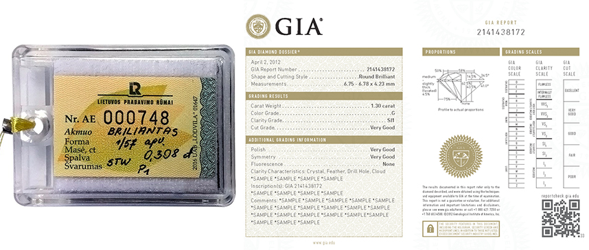 Brilianto sertifikatas yra jo įvertinimo ir jo kokybės dokumentas, kuriame yra pateikiami konkretaus brilianto parametrai, pvz.: jo spalva, švarumas, karatai, pagal kuriuos yra nustatoma konkretaus brilianto rinkos vertė. Pasaulyje yra daug įvairių institutų, kurie sertifikuoja briliantus, pav., vienas garsiausių ir labiausiai pripažįstamų Amerikos Geologijos Institutas (GIA), vertinamas už nešališkumą ir kokybę itin gerai ir detaliai nustatant briliantų parametrus. Pagal Lietuvos Respublikos įstatymus Lietuvoje galima prekiauti tik Lietuvos prabavimo rūmuose patikrintais ir sertifikuotais briliantais, todėl iš esmės užsienio valstybių briliantų sertifikatai Lietuvoje negalioja. Todėl, turint tokį briliantą bei norint jį parduoti, jį reikėtų persertifikuoti Lietuvos prabavimo rūmuose (LPB).