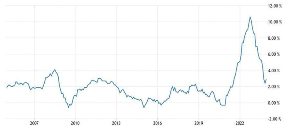 Infliacijos grafikas ir neigiamas poveikis gryniesiems pinigams: -32,5 %, laikotarpis nuo 2005 m. iki 2023 m.