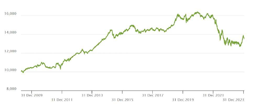 Obligacijos - hipotetinė 10 000 EUR suma, investuota iki 2023 m. gruodžio 31 d.