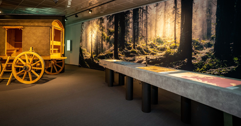 Kitoje salėje galima pakeliauti romėnišku limuzinu - vežimu, pajausti ką reiškia važiuoti tokia transporto priemone, dardėti į šonus ir matyti mišką priekyje, arba įsilipti į valtį. Vaikams yra padaryta pakrantė su smėliu. Yra jūros vaizdas, smėlis, kuriame vaikai gali ieškoti ir prisirinkti tikrų gintarų. Parodoje yra daug visko ką galima paliesti, išbandyti - kartais genialumas slypi paprastume, kur galima paimti ir patirti tą parodą.