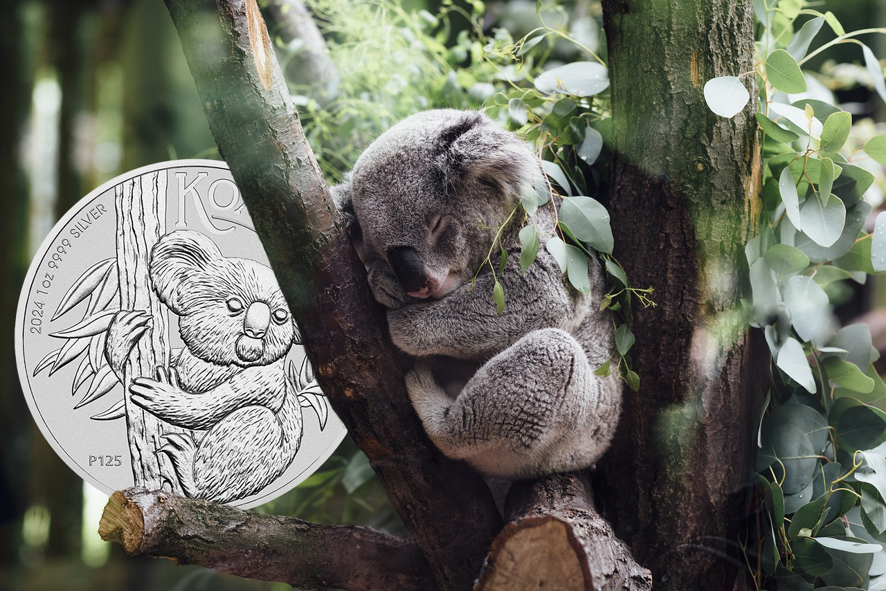Reversas: Monetoje vaizduojama koala, kuri laikosi įsikibusi ant medžio šakos. Į monetos dizainą taip pat įtrauktas užrašas "Australian Koala", tradicinis "Perth Mint" kalyklos ženklas, pažymėta "2024" data, taip pat gryno sidabro svoris "1 oz." ir praba ".9999".
