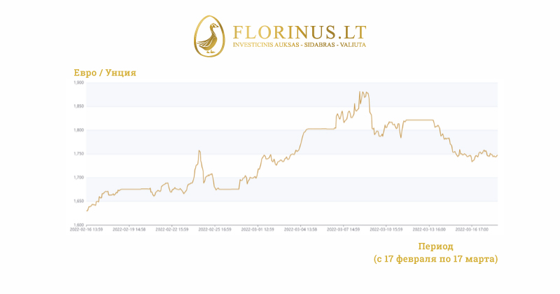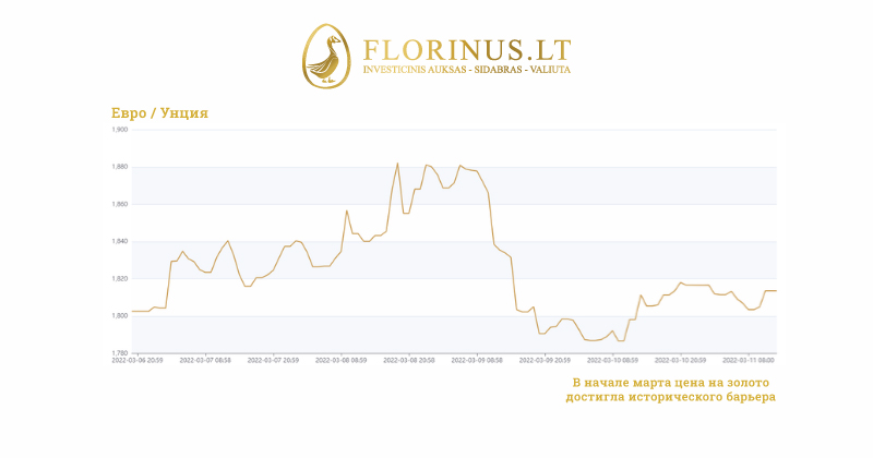 Когда начался первый день войны, цена на золото достигла самого высокого уровня с лета 2020 года. И спрос на эти активы значительно вырос во всех салонах “Florinus” в Литве. Подсчитано, что в первые дни войны драгоценных металлов было продано более чем на 1 миллион евро.